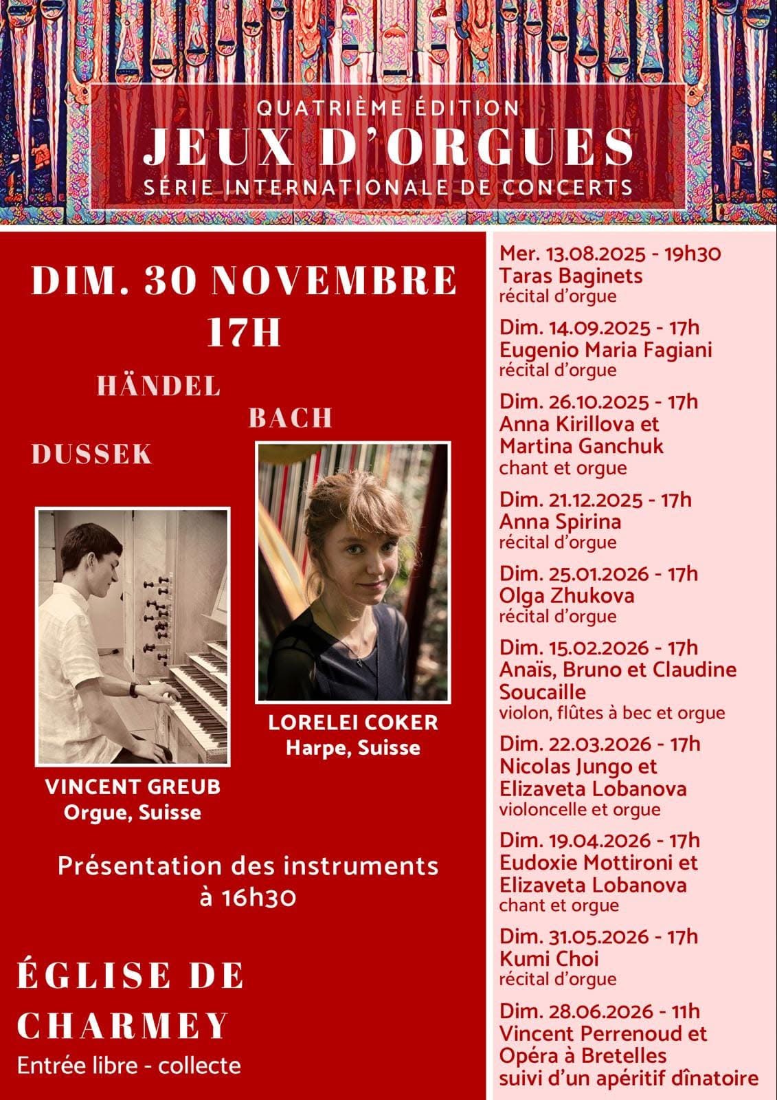 A vos agendas : les concerts auront lieu le 7 novembre 2025 au Pâquier et le 8 novembre 2025 à Charmey.